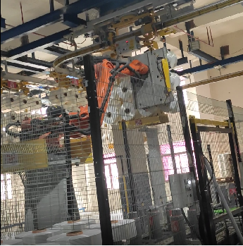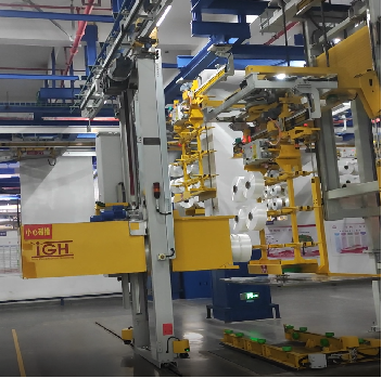 4.EMS小車(chē)運(yùn)輸絲架至包裝區(qū)抓絲等待位,等待機(jī)械手抓絲。